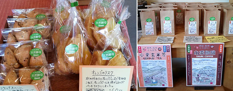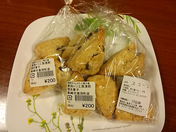 シンプルだからこそ、おいしい逸品。材料は小麦粉、四つ葉バター、牛乳、砂糖、チョコチップ、アルミフリーベーキングパウダー。さっぱりとして、ほんのり甘い味わい。こうした隠れた逸品が、さりげなく道の駅で売られているところが、いいですね。