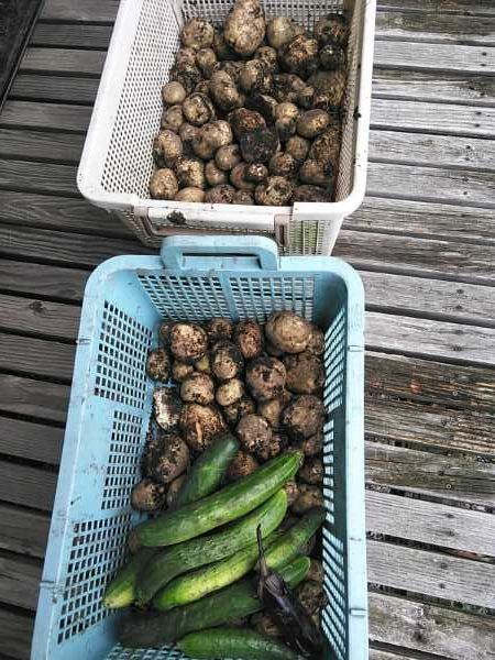 雨が降り肌寒いので、夏野菜の収穫は、まだ先だと勝手に思っていたので、ちょっとびっくり。